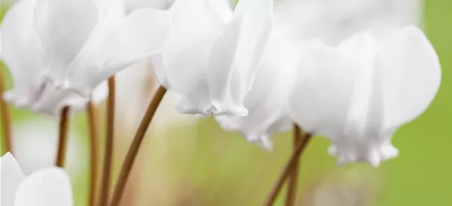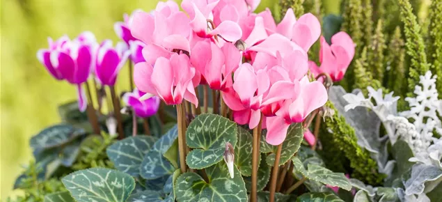 Alpenveilchen machen nicht nur als Zimmer- und Freilandpflanzen eine gute Figur. Manche Sorten eignen sich auch gut als Schnittblumen. Sind die Bedingungen optimal, können sie rund zwei bis vier Wochen in der Vase halten, dazu sollten die Enden der Blütenstiele eingeritzt werden.