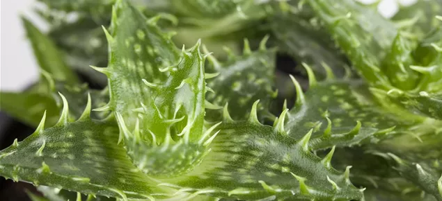 Die Blattrosette können Sie dagegen das ganze Jahr über als Pflanzschmuck genießen – plus als Schönheits- und Heilmittel: Einfach eines der fleischigen Blätter kappen und mit der Schnittstelle die Haut betupfen oder mit einem Messer das Gel des Blatts herausdrücken und auftragen. So eine SOS-Maßnahme hilft bei Insektenstichen, Herpes, Schnitt- und Schürfwunden, Sonnenbrand und anderen Verbrennungen. Sie können Aloe vera aber auch kurmäßig anwenden, bei Akne, trockener, empfindlicher oder unreiner Haut. Zum Beispiel mit einer Maske, die Sie einmal wöchentlich zehn Minuten einziehen lassen. Dazu ein Blatt von der Außenhaut befreien, durchpassieren, den Saft mit einem Teelöffel Quark und Honig verrühren, fertig! Oder das Gel pur auftragen, kurz antrocknen lassen und dann abspülen. Diese Treatments lindern Reizungen, hemmen Entzündungen, befeuchten und beruhigen, glätten und pflegen den Teint: Ihr eigenes Home-Spa – mit dem Beautyelixier aus dem Blumentopf!
