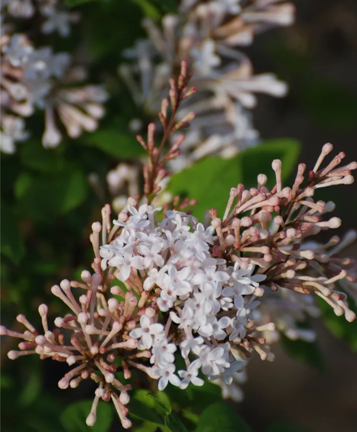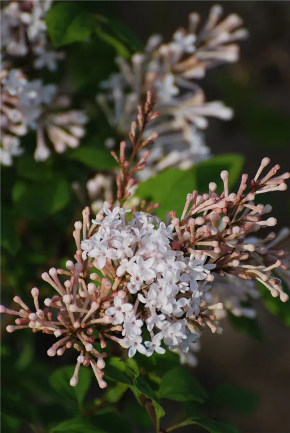 Die Blütenrispen von 'Fairy Dust'® bezaubern mit einer - für Flieder - außergewöhnlichen Farbgebung: Antikrosa Knospen öffnen sich zu altrosa bis weißen Blüten, welche herrlich duften! Dieser Zwergflieder eignet sich hervorragend für kleine Gartenräume, Terrasse und Balkon.