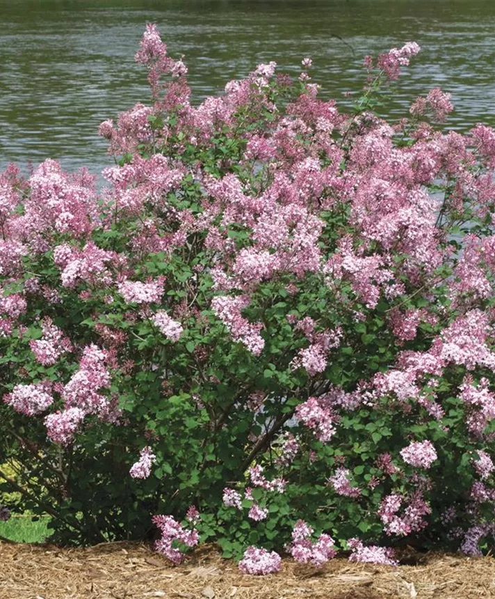 Dieser stark duftendeZwergflieder wird nur ca. 90 cm hoch. Der Wuchs ist sehr breit aufrecht und dicht verzweigt. Die Blüten sind in der Knospe dunkelrosa, geöffnet lilarosa. 'Pink Perfume' blüht im Mai und hat den Sommer über zahlreiche Nachblüten, die von Schmetterlingen besucht werden. Diese Sorte eignet sich für kleine Gärten oder die Terrasse.